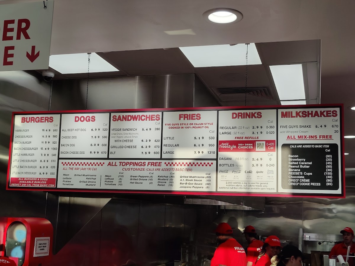 The atmosphere amplifies the dining experience—a clean, welcoming space staffed with friendly, attentive employees who heighten customer satisfaction. Five Guys combines quality ingredients, customizable options, and genuine hospitality to create a memorable, crave-worthy meal every time.